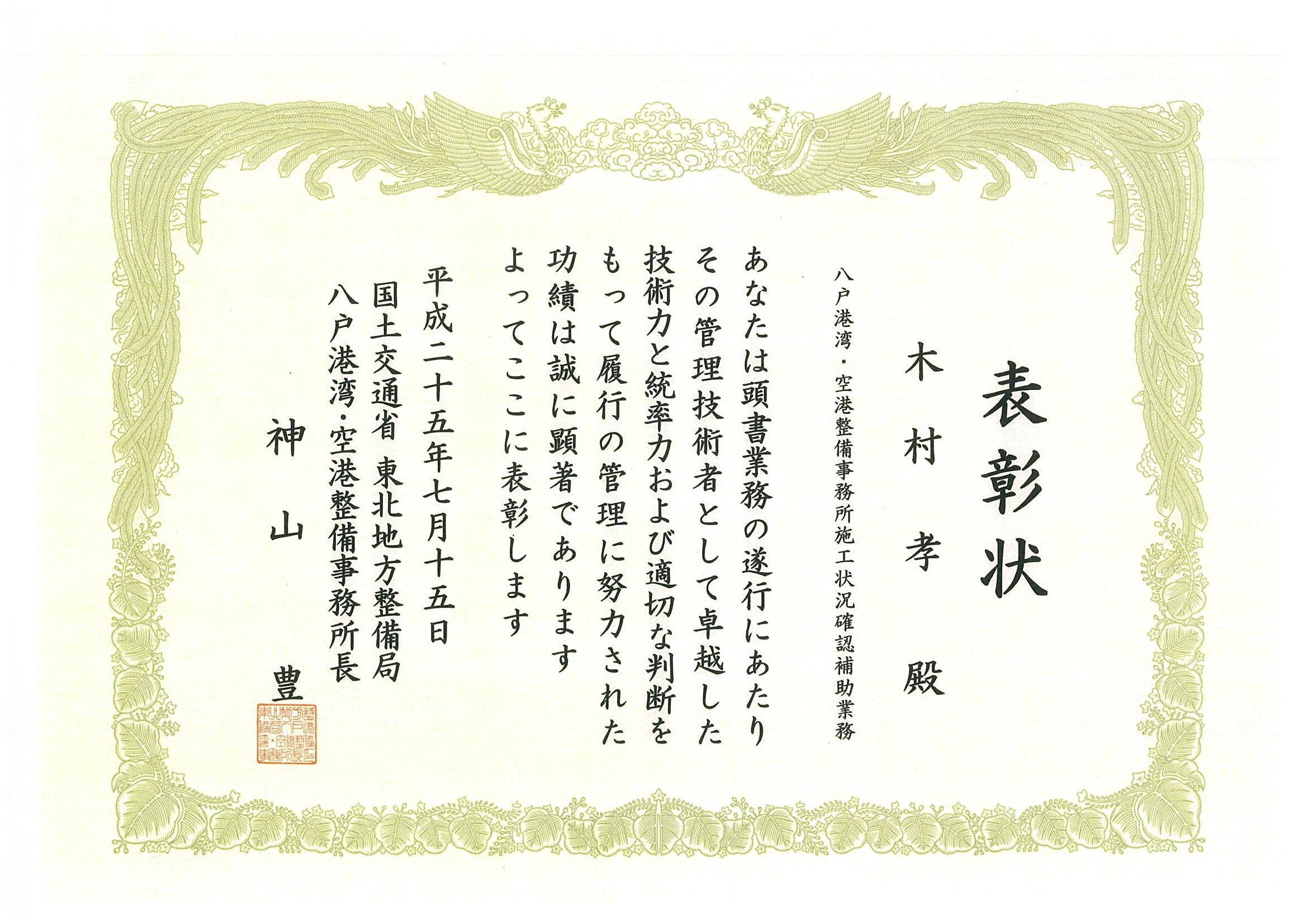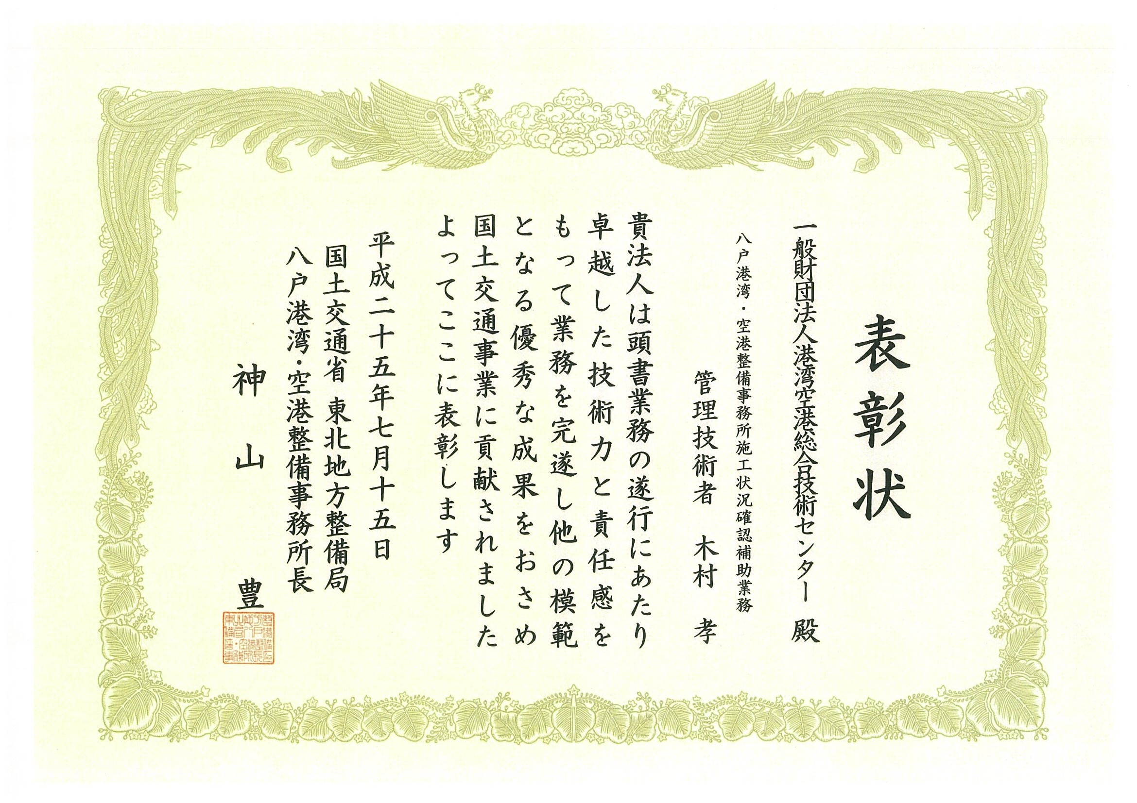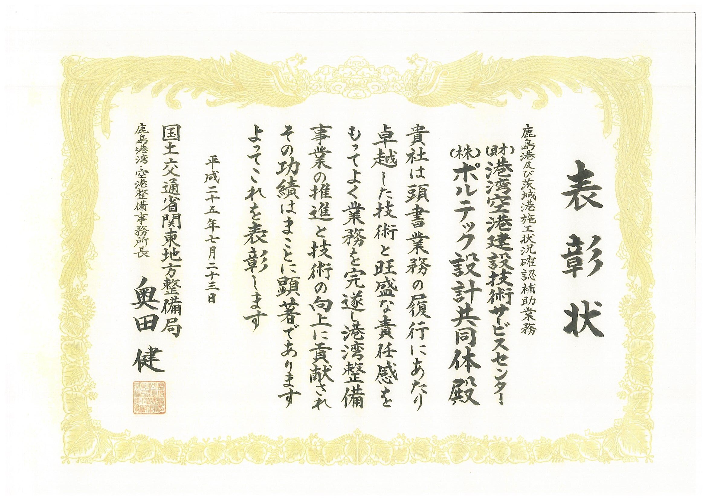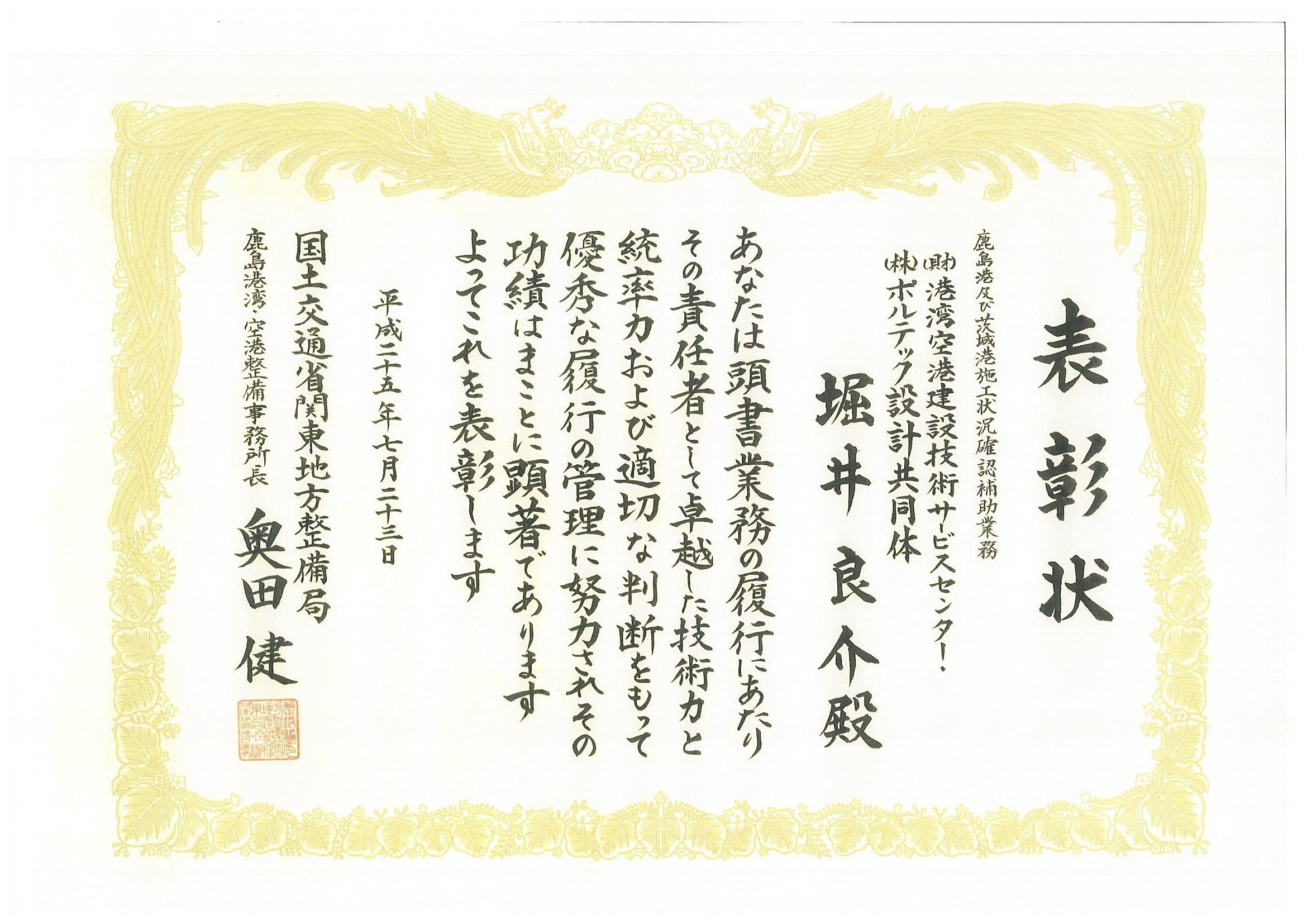 ~国土交通省より優良業務表彰を拝受いたしました~