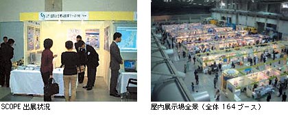 | 「くらしと技術の建設フェア」in 松山 開催 最新の建設技術及び研究成果を、イベントを通じて紹介・交流することにより、建設技術の向上を図るとともに、私たちのくらしを支える豊かな国土づくりに欠かせない建設技術について、国土整備行政の紹介を、一般の方々に認識を高めてもらうことを目的に産、学、官が一体となり、国土交通省四国地方整備局の主催で昨年11月21〜22日の2日間、愛媛県松山市のアイテムえひめで「魅力ある四国を創造するための建設技術」をメインテ-マに「建設フェア」が開催されました。 ●開催内容:建設技術に関するパネル、機器、模型、機械展示など 1. 建設技術に関する最新技術の紹介 2. 建設技術に関する研究成果の紹介 3. 国土整備行政の事業概要等の紹介 また、当SCOPEも情報コ-ナ-において、<港湾・空港CALS関連システム>を出展しました。 企画イベントでは、津軽三味線&太鼓のグル-プ「だんだん」のオープニング演奏、キャラクタ-ショ-では、子供たちに人気のある爆竜戦隊アバレンジャ-、常設イベントでは、四国四県の有名駅弁フェア等々が開催されました。 ちなみに入場者数は、主催者発表で4,800人の方々が来場されました。 平成16年度は、高知の「高知じばさんセンタ-」で開催される予定です。