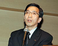 大阪府は、増えるつづける業務と減り続ける人員、厳しい財政事情のもと、抜本的な業務改革策として、建設CALS/ECに取り組んでいる。昨年の4月に「大阪府の建設CALS/ECアクションプラン」を策定し、平成13〜15年度にかけて電子入札、電子納品、情報共有システムの開発している。平成16〜18年度は業務改善方策に基づく業務モデルの構築を行う計画で、これは既に運用している各システムのさらなる改良と拡大、それから相互情報データベース化やGISを核とする新しいCALSの構築を検討している。組織のスリム化、業務のBPR効果などの調査・分析を行い、その結果に基づいてCALS/ECの導入を進め、19年度からの本格的な運用を目指している。 |