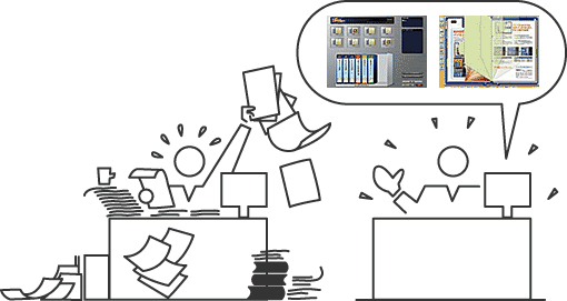 平成16年2月24日、内田洋行(東京都中央区)はこのほど、バインダ形式で利用できるPDF作成ソフト「ぱらビュ〜」の販売を開始しました。価格はオープン。 「ぱらビュ〜」は、煩雑な文書管理をスキャナ、PCの活用により、電子キャビネットにバインダでタイトルをつけて整理するもの。スキャナから読み込んだ原稿や、ワープロ・表計算ファイルなどをPDFに自動変換。電子バインダとしてまとめて管理できます。保存できる量は1500バインダあり、一つのバインダで500ページ保存できます。 デスクトップのファイリング体系は、現実の部屋、キャビネット、バインダがリアルに表現されており、指定したPDFをクリックすると、実際の紙と同じようにページをめくることができ、ページ上の任意の位置に付せんを貼ったり、色を引いたりできます。また、パスワードを発行し、一台のPCで複数の人が使えるようにしました。 |