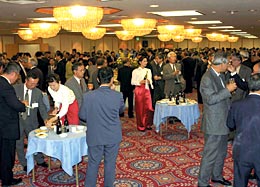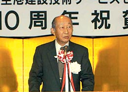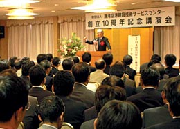 SCOPEは、去る6月7日、霞が関ビル33F東海大学校友会館において「SCOPE10周年記念講演会及び祝賀会」を開催しました。以下にその概要についてご報告いたします。 SCOPEは、港湾・空港の建設・維持管理に係わる発注及び施工に関して国、地方公共団体等の発注者への支援、建設会社、コンサルタント等への情報提供、技術提供を目的として、平成6年5月30日設立し、本年で満10周年を迎えました。設立以来、SCOPE(スコープ)の愛称で親しまれ、港湾・空港づくりのパートナーとして順調に発展してまいりました。これも偏に国土交通省をはじめ関係者の皆様方の温かいご指導、ご支援の賜であり、深く感謝申し上げます。 記念講演会は、同会館「望星の間」で、中谷 巌氏(UFJ総合研究所理事長、兼多摩大学学長)を講師にお招きし、「日本経済の将来と構造改革」と題して、講演をしていただきました。 当日は、講演会開始直前に雨が降ったにもかかわらず、予想を超える大勢の方々にご出席をいただき、当初三百余の椅子を用意していましたところ満席となり、出席者が増える都度、席を増やしてまいりましたが、とうとう椅子の置き場所もなくなり立ち見席が出るほどとなりました。 講演内容も講師の中谷 巌氏が我が国経済の将来などについて大変貴重なお話をしていただきました。ご出席の皆様には十分ご満足いただけたことと思います。 なお、講演要旨につきましては、本誌「RANDOM FOCUS」に掲載しておりますのでご覧下さい。 祝賀会は、講演会終了後、場所を移して同会館「阿蘇の間」で開催しました。西川会長の開会挨拶の後、ご来賓として、国土交通省から岩村 敬国土交通審議官(現:国土交通事務次官)、金澤 寛技術総括審議官からご祝辞をいただき、初代理事長土田 肇氏の乾杯のご発声により歓談に移りました。祝賀会も四百名を超える皆様にご出席をいただき、会場は人で溢れんばかりとなりました。 お陰様で講演会、祝賀会とも盛会裏に終えることができました。この誌面をお借りしまして厚く御礼を申し上げます。