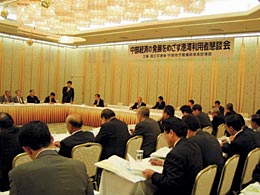 | 中部経済の発展をめざす港湾利用者懇談会開催 平成16年6月1日、中部地方整備局港湾空港部主催により「中部経済の発展をめざす港湾利用者懇談会」が開催されました。 中部地域は我が国の「モノづくり」を支える日本有数の製造業が集積する地域であり、本地域の港湾は、輸出産業集積地に直結する世界へのゲートウェイとしての役割を果たしています。 そうした中、国際競争力のある港湾インフラを整備していくことが、更なる中部地域の経済発展に必要不可欠であり、限られた港湾予算の効率的運用と、真に必要なインフラ整備を推進するため、同局の呼びかけにより開催されました。 懇談会は、この趣旨に賛同されたトヨタ自動車(株)などの荷主企業、日本トランスシテイ(株)などの港運業界、中部経済連合会などの経済界、名古屋市を始めとする関係自治体の代表者、計29名の出席を得、当局からは藤田港湾空港部長始め、名古屋、四日市、三河の各港湾事務所長、丸山企画官が出席され干山名古屋港所長の司会で進められた。懇談会では、「港の競争力は経済発展に不可欠」、「大型コンテナ船の着岸できる岸壁の拡充」、「港と背後圏とのアクセスの整備促進」、「モノづくりの拠点として生産高に見合う岸壁整備」、「岸壁、施設の耐震化」など、地域の拠点として、港湾のコスト、安全、スピード(定期・定時制)、サービスの充実と、アクセス整備に関する貴重な意見が数多く出され、予定の時間をオーバーする程熱心な討議がなされました。藤田部長は「今回の意見を参考に、物流機能の総合的な空間として、地域の発展に貢献していきたい」とし、無事終了しました。 |