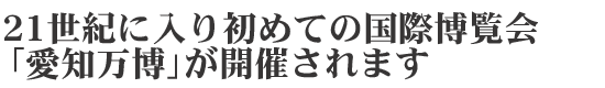 折から、博覧会の約1カ月前には、中部国際空港が開港いたします。空港内からは、名鉄の直通特急で名古屋駅までおよそ30分以内で到達が可能であります。 2005日本国際博覧会「愛知万博、愛・地球博」にぜひお越し下さい。