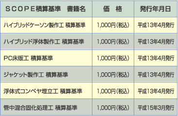 | SCOPEでは、現在6工種のSCOPE積算基準を出版しています。今後も新技術・新工法の活用促進を目的として新たな工種のSCOPE積算基準化を予定しています。 現在SCOPEのホームページでは、「積算、仕様書に関するQ&A」が掲載されていますが、SCOPE積算基準についてのQ&Aは掲載されていませんでした。そこでSCOPE積算基準の利用者の方々に適切な運用が行えるようSCOPE積算基準Q&Aをホームページに今春掲載する予定です。 Q&Aの内容は、これまでにSCOPE積算基準を利用していただいている発注者および受注者の方々からいただいたご質問とその回答を中心に掲載する予定です。