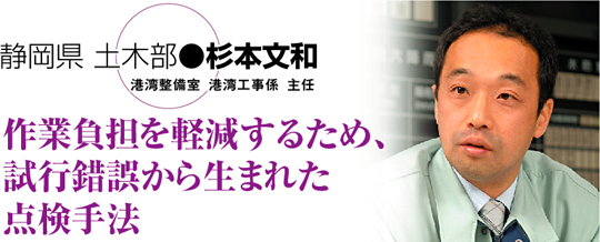 | 静岡県土木部では、土木施設長寿命化行動方針のとりまとめのために、国土政策総合研究所(以下、国総研)、(独)港湾空港技術研究所(以下、港空研)の助言等も得ながら、学識経験者を含めた検討委員会を設けて、議論が進められた。 実施初年度となる19年度は、現状把握のための点検・調査による基礎データの収集が作業の中心となる。データ収集には、港空研の仕様を基にオリジナルで作成した目視点検シートが使用される。シートは陸上・水上調査用の2種類。例えば、岸壁の場合は、1スパンを5m〜10m程度で区切り、重要港湾以上に付されている係船柱の番号を地方港湾にも付けて、状態の凡例を基に現場の形状を書き込むといった作業を軽減するための工夫が為されている。「試行錯誤の繰り返しでしたが、できるだけ現場での作業の負担を軽減するため、位置と状態だけを記入すればいい簡素なものにしました」(杉本氏)。 施設の状態を示す健全度評価については、国総研が示すa〜dの4段階評価で行い、機能低下など状態が思わしくない場合は、さらに細分化して全体の評価項目の中に組み入れている。ただし、静岡県土木部は、港湾以外の土木施設も所管するため、他の施設と評価方法を統一し、通常は最も悪い状態示すaをdとして逆にしている。 このような準備を進めながら、昨年6月には各事務所の職員を集めて、田子の浦港で実際に点検・調査を試験的に行っている。現実的な問題としては、現場の職員のスキル的な部分だ。点検は2人1組で、2人が同じ点検を行うこととしているが、同じ点検箇所で評価が分かれる場合も考えられる。その際は、現場を写真撮影して改めて評価を判断することになる。「できるだけ短期間で経験を積んでもらい評価のバラツキがないようにしていかなくてはいけません。また、実際に業務量が増えるわけですから、職員に対してこの業務の重要性についての意識の向上を図らなくてはいけません。周知徹底のためにも研修を行って対応する必要があると考えています」(杉本氏)と言う。 この点検・調査で得られたデータが、中長期管理計画を立案・策定する上での要となる。そのためにも、この2〜3年が今後の鍵を握る重要な期間といえる。当面は紙ベースの点検シートを使ったデータ収集を行うことになるため、集計作業もしばらくは手計算で行わざるを得ないが、例え紙ベースであっても点検・調査によってデータを積み重ねていくことを重視している。将来的には過去に行われた維持補修等のデータも統合し、システムを構築してデータベース化を進める予定だ。 中長期管理計画については、事前にバース毎に取扱貨物量等のデータがわかっている清水港、田子の浦港、御前崎港の3港をモデルケースに、最小のLCCを重ね合わせて試算を出している。試算では、単年度で初期投資約50億円の補修を行えば、以降、各施設ごと最適な維持補修サイクルで維持補修していくと仮定して50年後には累計約135億円かかると算出した。「実際にはこのようなことは不可能です。これを1年に2〜4億円程度に平準化した結果、累計約160億円と算出されました。単純合計ではより多く費用がかかりますが、試算としてはこれが一番順当な方法です」(杉本氏)。あくまでこれは試算に過ぎない。点検・調査の結果次第で、より具体的な計画を検討する必要もある。「県の予算要求も基本的にスキームの無いものは認められない状況です。計画についても、それを行うことでどのような効果があるか。そのアウトプットがないとなかなか予算が認められません」(杉山氏)。 「今」という時代は、「係留施設等ガイドライン」に則り「公共施設の有効利用と効率的運営」をこのように行いますという説明だけではコンセンサスは得られない。公共事業における社会的便益とは何かを問われる時代だ。港湾施設は他の公共土木施設と比べて直接的に効果が見える要素が少ない。やはり、予算=税金を投じて行うことから、この業務の意義を広く県民の理解を得るための努力を図る必要がある。そのため、HPなどを通じて情報を公開し、広く理解を求める地道な活動も行っている。 今後、収集するデータを基に立案する中長期管理計画の準備に入る。静岡県としては、技術基準省令の改正に先んじて取り組んできたところだが、「国や他の自治体での先進的な事例を積極的に吸収して、密度の高い計画にどんどんとバージョンアップをしていきたいと思っています」(杉山氏)。そのため、関連するマニュアルの発行や講習会の開催など、国等の関連機関の積極的な情報公開を望んでいる。 |