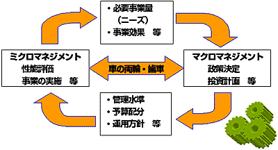 アセットマネジメントシステムは、金融工学、経済・経営学的手法を使ったマクロマネジメントと工学的対策を用いたミクロマネジメントが車の両輪となっており、その実効ある運用のためには、両者を橋渡しする「時間軸」が必要不可欠といった観点からミクロマネジメントの検討を行う必要がある。